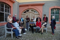 Lesung mit Ute Fritsch am dem Stein, wo einst Goethe und Schiller ihre Freundschaft beschlossen. |